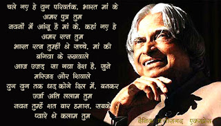 चले गए हे युग परिवर्तक, भारत मां के अमर पुत्र तुम नयनों में आंसू है मां के, कहां गए हे अमर रत्न तुम भारत रत्न तुम्हीं थे सच्चे, मां की बगिया के रखवाले आज उजड़ सा गया देश है, सुने मस्जिद और शिवाले युग युग तक धड़कोगे दिल में, बनकर उर्जा अति ललाम तुम नयन तुम्हें शत बार हमारा, सबके प्यारे थे कलाम तुम
